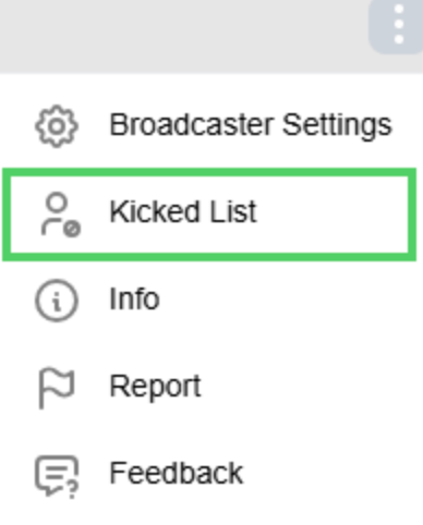 You can kick or ban a viewer from your session by clicking the Actions button in the Broadcaster User List.
