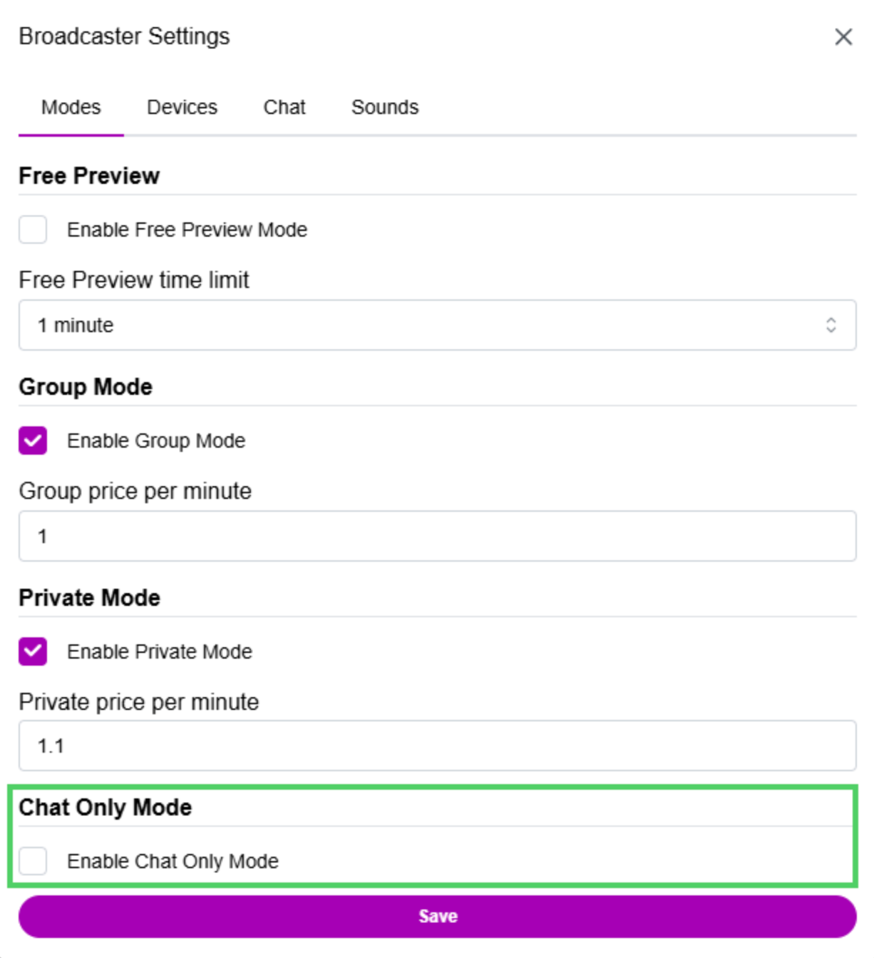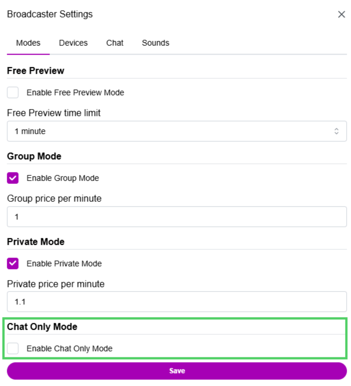 You can configure a free preview for users watching your session in your Broadcaster Settings. This feature lets hosts and viewers interact to decide the type of show the client wants before starting a Group or Private session.