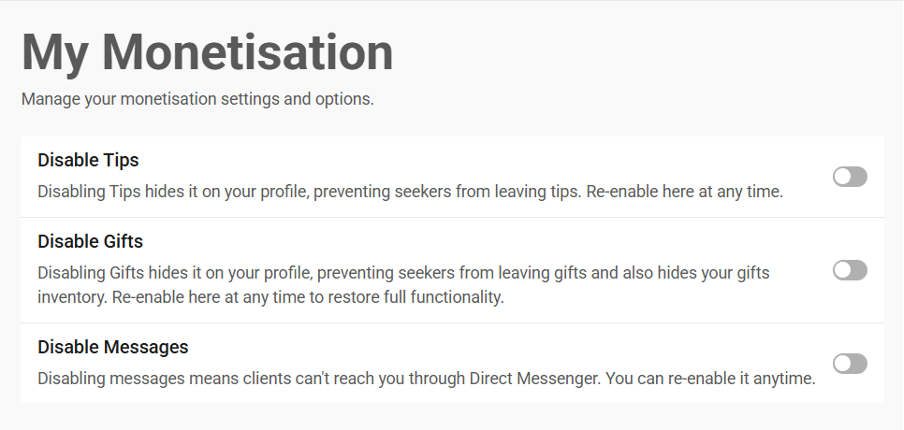 If for whatever reason you decide that you do not want to receive messages you are free to disable them via your Profile Monetisation settings. Just switch on the toggle there to disable it and you will not receive any new messages any more.