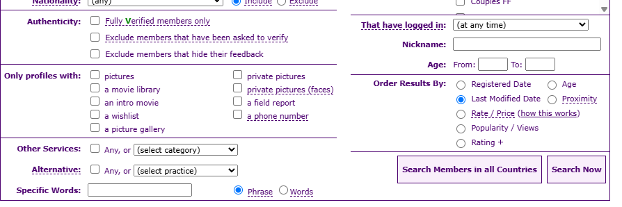 From the Search page, there is a drop-down box next to "That has logged in" on the right-hand side, near the bottom.